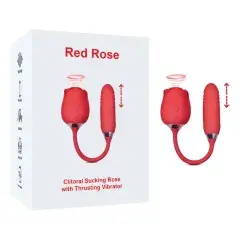 10-Speed Red Color Silicone Clitoral Sucking Rose with Thrusting Vibrator