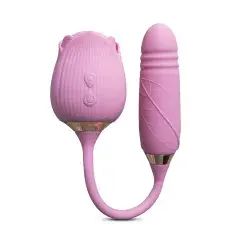 10-Speed Pink Color Silicone Clitoral Sucking Rose with Thrusting Vibrator